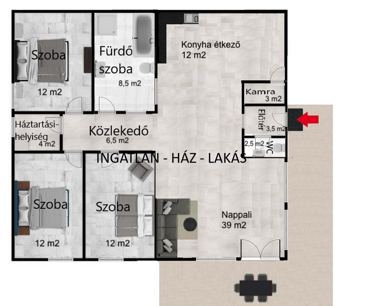 A belső elrendezés szabadon választható cégünk saját tervezője jelenlétében!