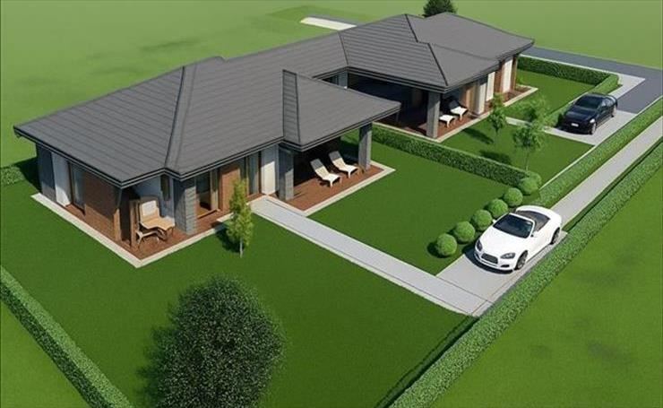 - Előszoba, nappali-konyha-étkező, kamra, 3 szoba, közlekedő, tágas fürdőszoba, vendégmosdó, háztartási helyiség + 14, 28nm fedett terasz és 14nm nyári konyha