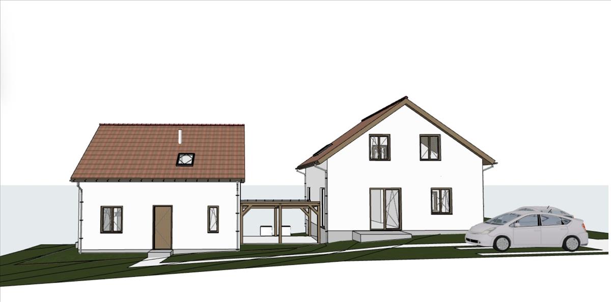 - Földszint: előtér, nappali-konyha-étkező, kamra/tároló, egy szoba, fürdőszoba + terasz + kerti tároló