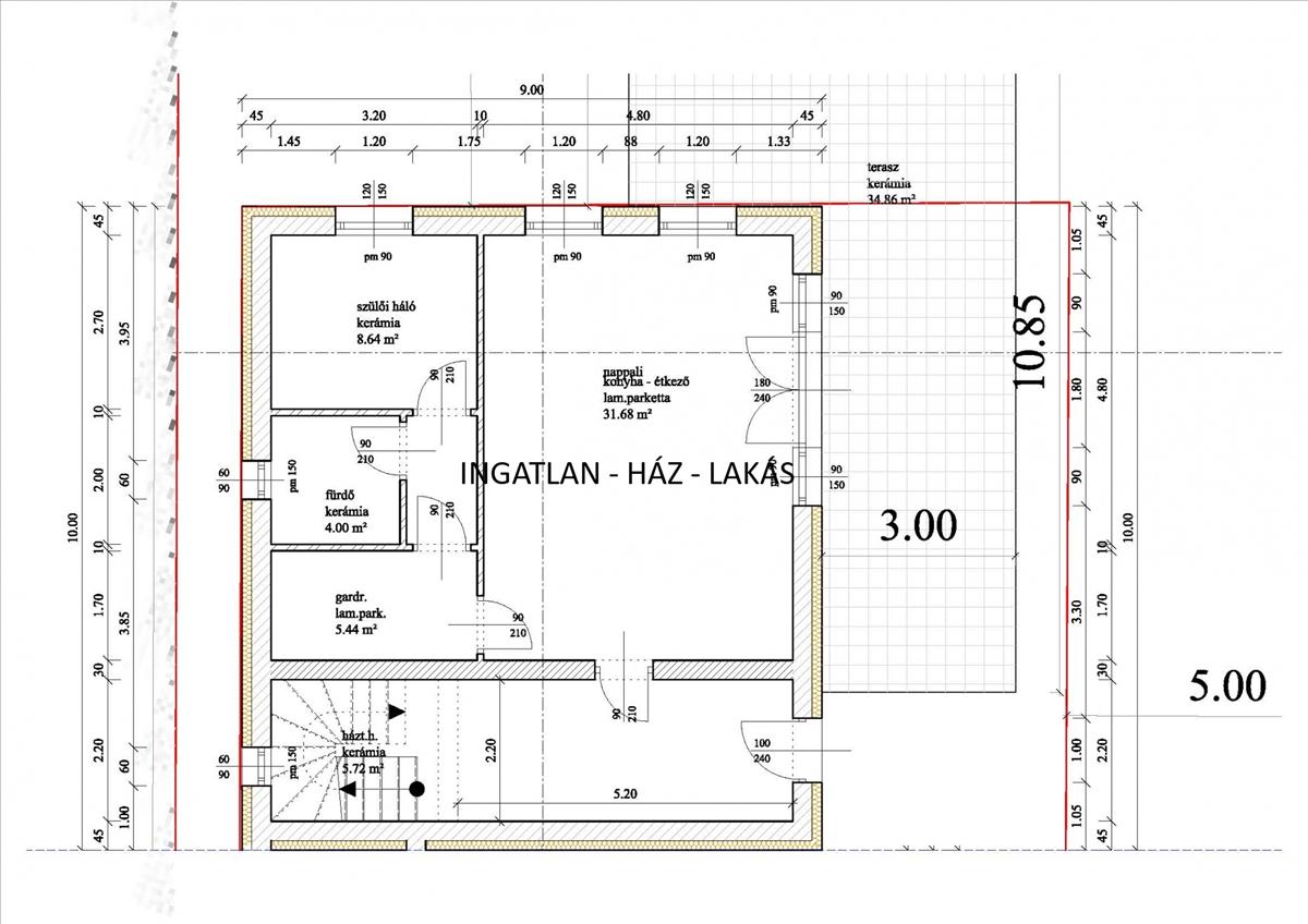 A ház korszerű anyagokból, magas műszaki tartalommal készült. Tágas, napfényes belső terei ideálisak családoknak, de akár pároknak is, akik kényelmes, egy szintes otthont keresnek.