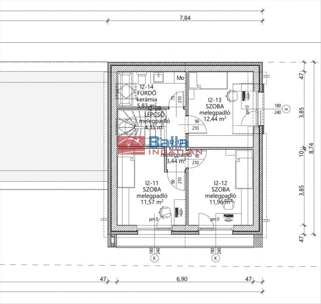 opadlófűtés az egész lakásban, fürdő helyiségek +törülközőszárítós radiátor