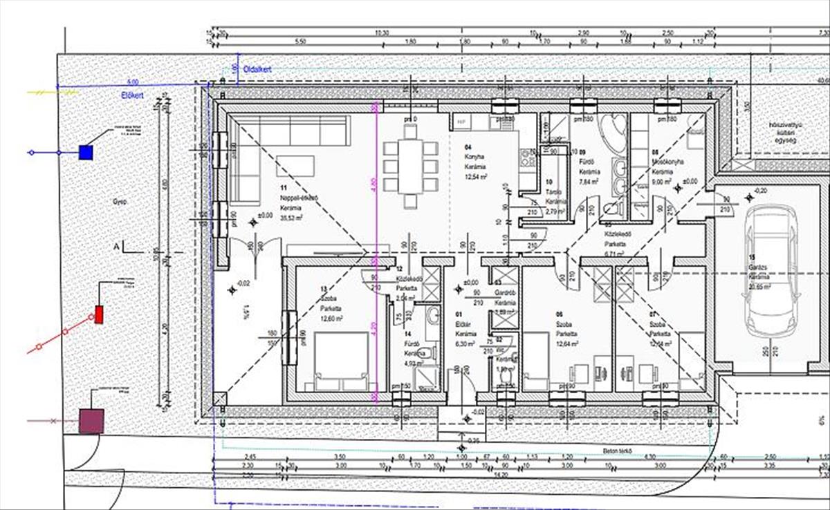 Szigetelés: 15 cm grafitos dryvit a homlokzaton, aljzatban 10 cm szigetelés