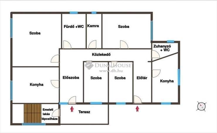 A két lakás külön bejárattal rendelkezik, így akár két generáció számára is ideális, vagy saját elképzelése szerint alakíthatja ki álmai otthonát! Az első emeleti, négyszobás lakás modern kialakítású: amerikai konyhás, nagy nappalival, melyből kapcsolat van a fedett terasszal, egy külön hálószobával, kamrával, háztartási helyiséggel és WC-fürdővel.