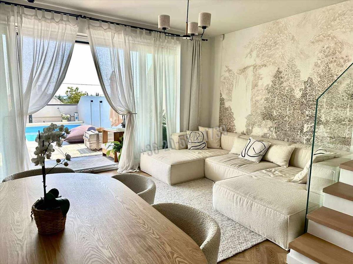 Gyenesdiás csendes utcájában egy 2023-építésű ikerház rész vált eladóvá csodálatos Balatoni panorámával!