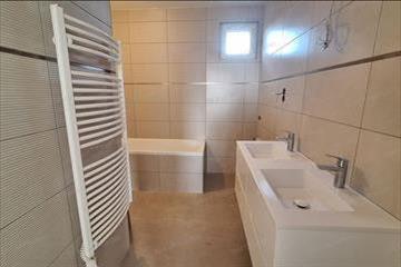- Szerelvények: 170*70 méretű acryl kád, Grohe csaptelepek, modern, dupla mosdós fürdőszoba szekrény tükörrel, világítással, elektromos törölközőszárítós radiátor, 2 db falba épített wc tartály, rejtett csavarozású,