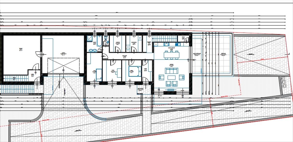 • garázs felett burkolt lapostető, terasz funkcióval