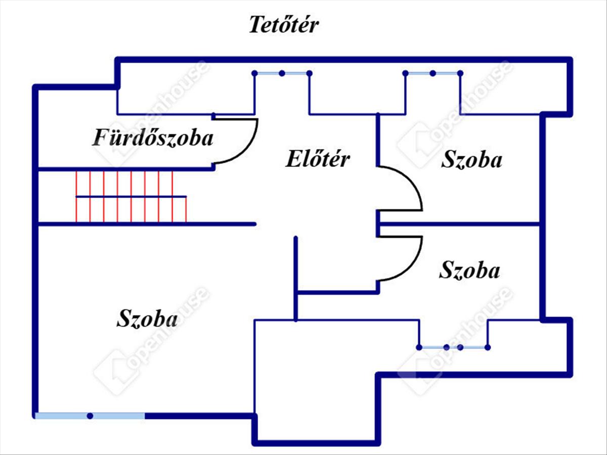Az emeleten három külön nyíló, jól szeparált hálószoba kapott helyet, amelyek ideálisak gyerekeknek, dolgozószobának vagy vendégszobának.