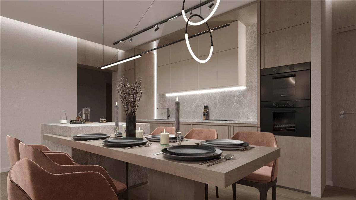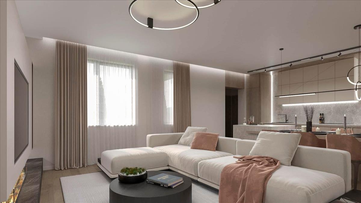 - Amerikai konyhás nappali nagy üvegfelületekkel, közvetlen teraszkapcsolattal