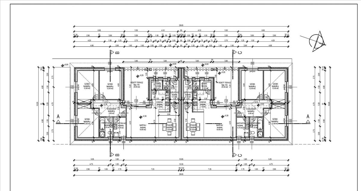 A lakások fedett terasszal együtt 120, 88 m²-esek, tökéletes elrendezéssel a mindennapi kényelemhez.