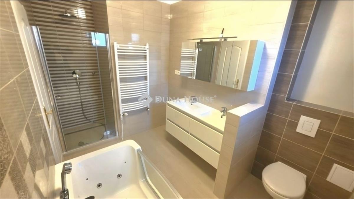 3 Hálószoba és egy tágas, napsütötte amerikai konyhás nappali, 2 fürdőszoba és egy külön mellékhelyiség (az egyik háló saját fürdővel rendelkezik), Gépesített, modern konyhabútor és beépített gardrób az előszobában.