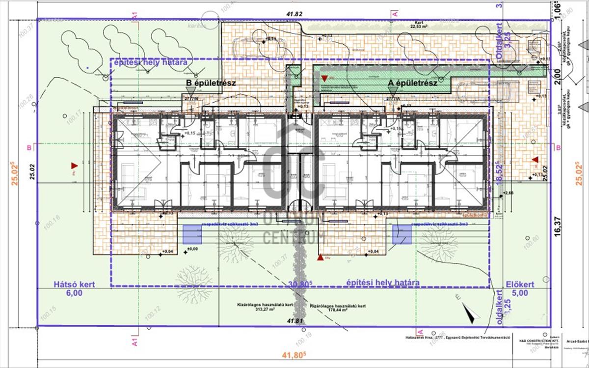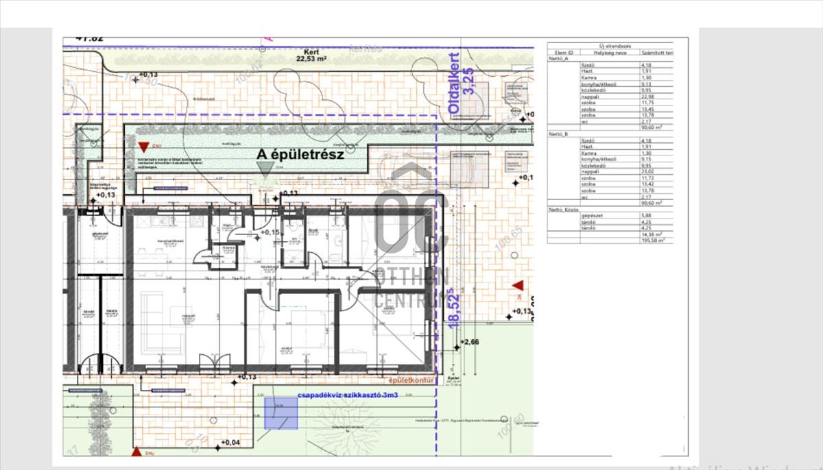 - a házhoz tartozó telek telek kb. 450 (Beépítetlen zöldterület/kertrész ebből 178, 44 m2)