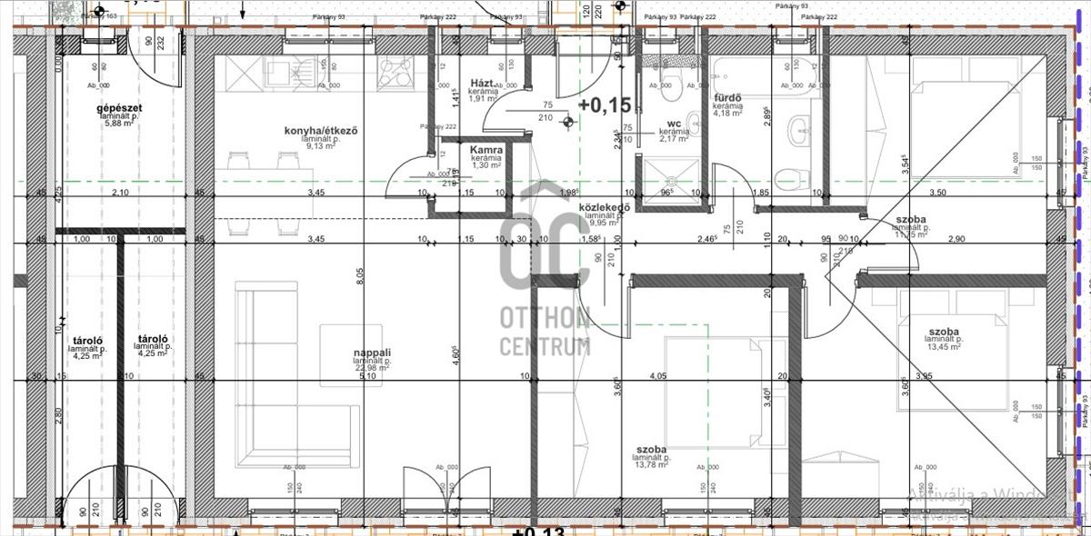 - aljzatban 8 cm lépésálló, födémen 2x15 cm kőzetgyapot szigetelés
