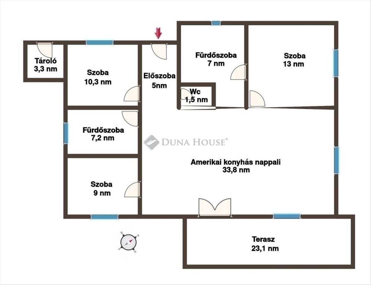 * 3 Hálószoba és egy tágas, napsütötte amerikai konyhás nappali.