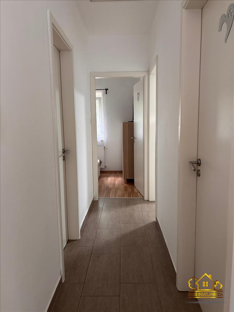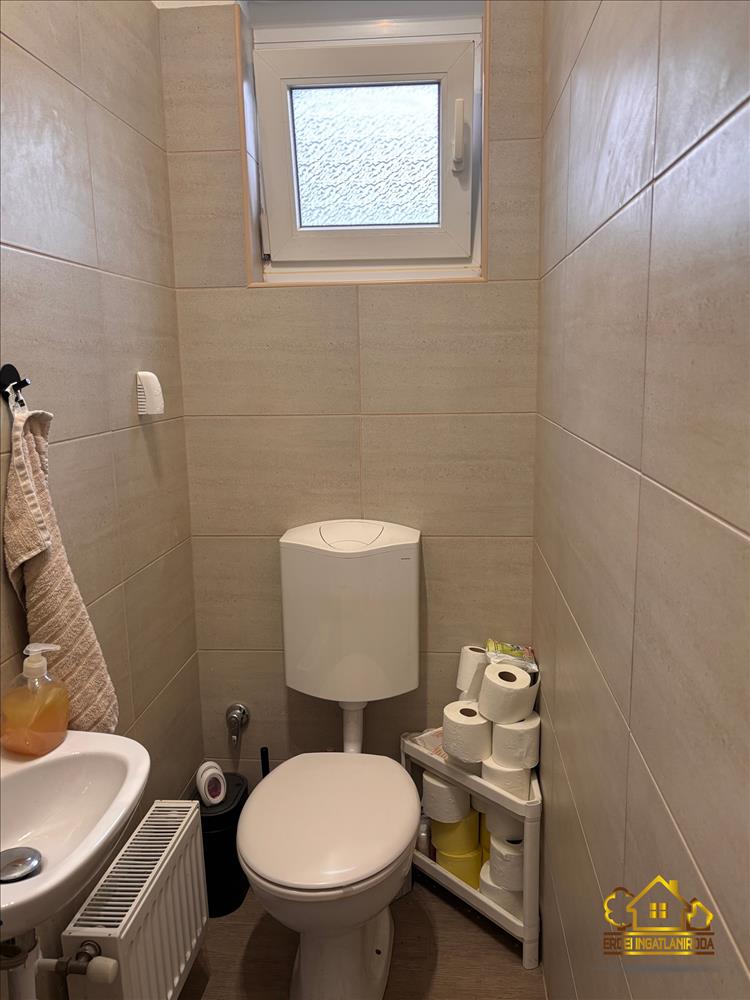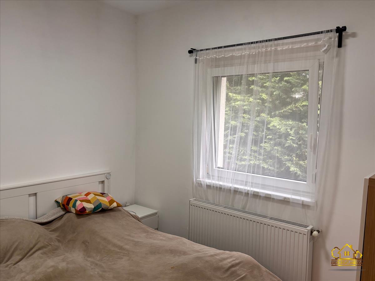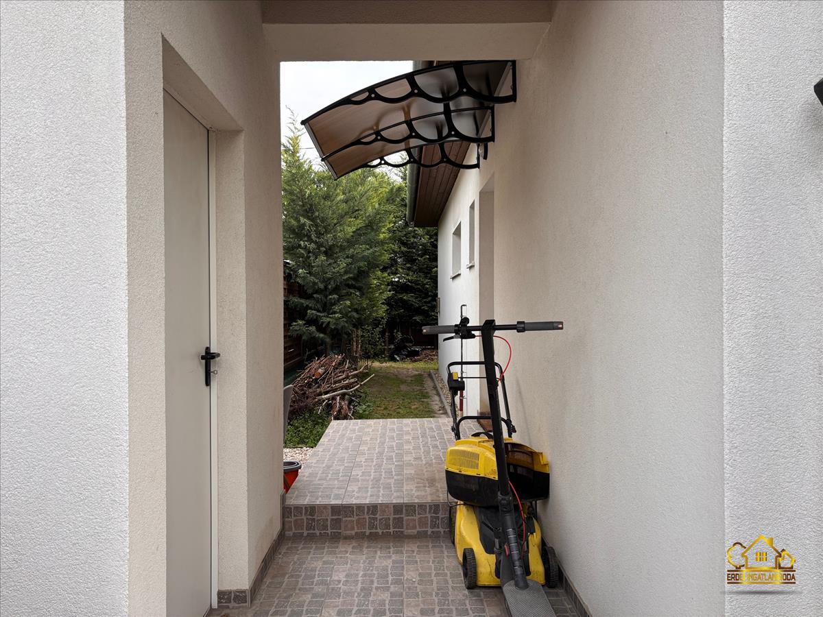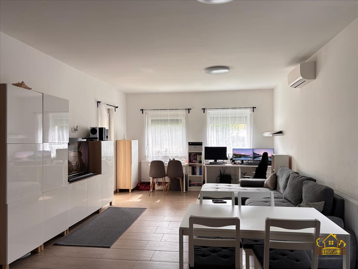 A praktikus elosztású ingatlanban van 3 hálószoba, egy amerikai konyhás nappali beépített konyhabútorral, gépekkel, egy fürdőszoba, egy külön wc helyiség és egy előszoba. a nappaliból a fedett teraszra jutunk ki, ahol a szomszédoktól egy teljesen elszeparált kert található.