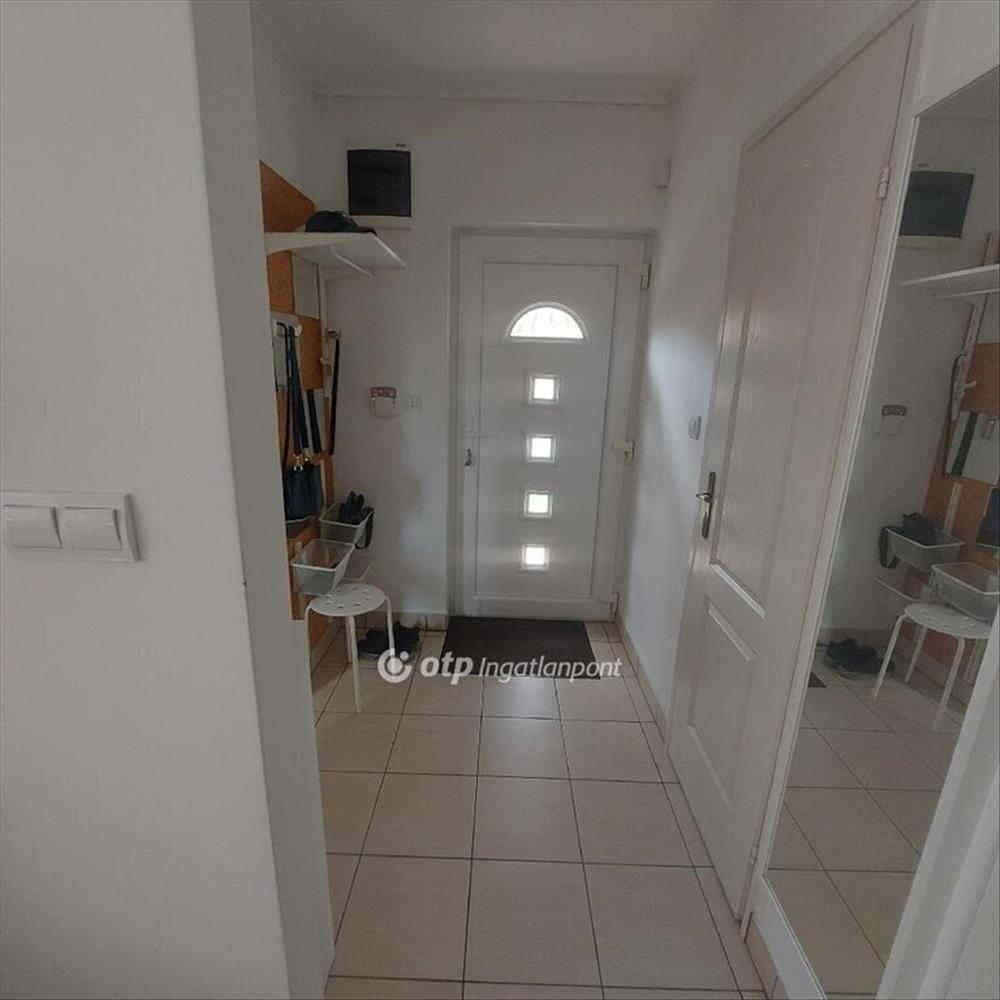 A lakásban egy szép előtér, az ebből nyíló tágas, zuhanyzófülkés fürdőszoba, külön wc, illetve egy szoba nyílik. Továbbhaladva egy amerikai konyhás világos, napfényes, déli tájolású nappaliba érkezünk. Minden hófehér ikea bútorokkal szerelt, meleg, tiszta, finoman elegáns és otthonos. Fehér konyhabútor, igényes, ikea gépekkel szerelt, modern, pratikus, a hozzátartozó fehér étkezőgarnitúrával. Minden letisztult, a mai igényeknek megfelelő. a konyhában találtahó egy nagyteljesítményű 3, 5 kw-os Daikin klímaberendezés is. Egy kisebb folyosón áthaladva a nappalin jobbra és balra található a hálószoba és mégegy szoba. Egy egyedi tervezésnek köszönhetően ezen szobákban a folyosó folytatása és a válaszfal két hatalmas falba süllyesztett tükrös gardróbszekrényt rejt. a tetőtér faszerkezetű, osb lapozva létrás feljáróval, pakolható. Alacsony fenntartási költségek, napfényes, világos terek. Az előkert füves és néhány fa is díszíti, Játszótérnek is alkalmas. a hátsó kert kisebb, inkább díszkert, de a terasz fedettsége a kellemes, meleg, déli tájolású térben hűvös árnyékolt teret eredményez.
