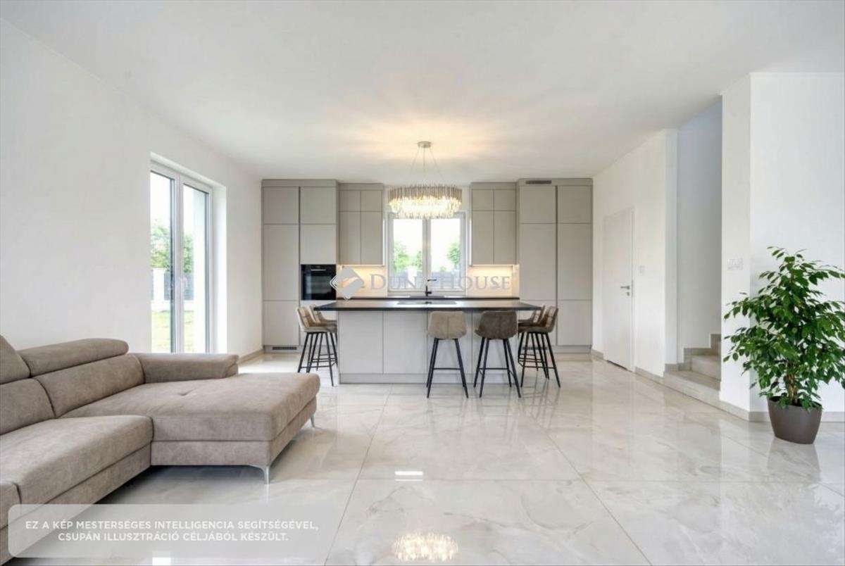 Azonnal költözhető, prémium minőségű új építésű otthon keresi új lakóit, Budapesttől mindössze negyed órányira. Herceghalomban eladó egy keleti tájolású kétszintes ikerház fél, mely saját 500nm -es telken fekszik. a kertkapcsolatos, luxus kivitelezésű 189nm -es házhoz tartozik egy garázs és egy 30nm -es terasz, továbbá egy 30nm -es erkély is. Kialakítása révén önálló ház hatását kelti, erre nagyon odafigyeltek kivitelezéskor. Főbb jellemzői:- hőszivattyús fűtésrendszer, mennyezeti hűtés/fűtés- szobákban egyedi hőfok-szabályozási lehetőség- háromrétegű műanyag nyílászárók- 15cm-es szigetelés- 30cm-es Porotherm tégla- 3 fürdőszoba biztosítja a nyugodt készülődést - napfényes, elegáns kialakítású terekA képek között található ai látványterv, ami illusztrációnak tekintendő. a magas minőségű kivitelezésnek köszönhetően rendkívül alacsony fenntartású a ház. Herceghalom a Zsámbéki-medencében fekszik, közel Budaörshöz illetve Törökbálinthoz. Az autópályán illetve 1-es főúton a főváros is mintegy 20-25perc alatt elérhető. Az ingatlantól a vasútállomás és buszmegálló gyalogosan mintegy 5 percre található, ahonnan elővárosi vonattal gyorsan bejutunk Budapestre. Óvoda, iskola, benzinkút, posta, közértek, orvosi rendelő és gyógyszertár is van a községben. Gyönyörű gesztenyfasoros település, közel a fővároshoz, mégis élhető zöld környezetben. Hitel.hu - Hasonlítsa össze a bankok lakáshitel ajánlatait