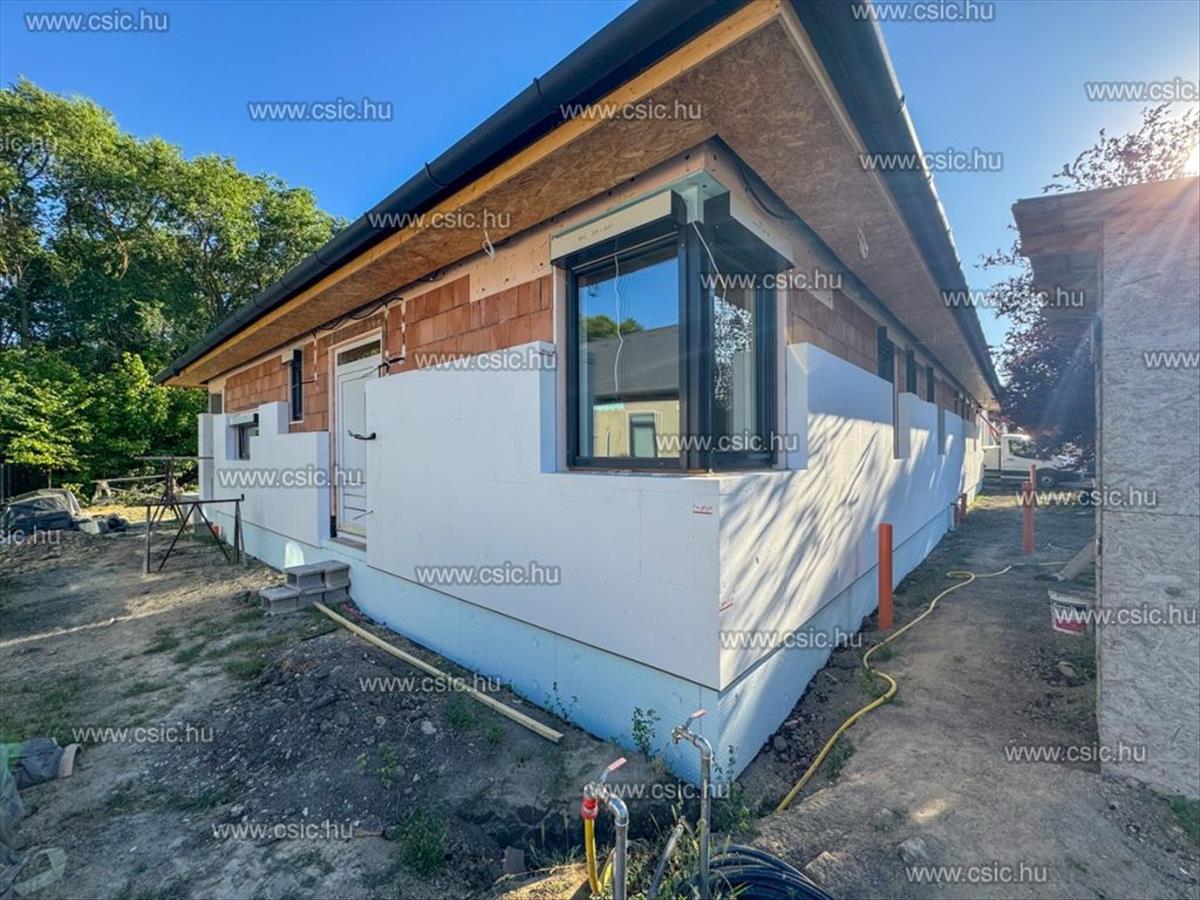 A válaszfalak 10-es porotherm téglával készültek, a nyílászárók 3 rétegű szigetelt magas minőségű anyagból. a tetőcserép pedig egyenesen Franciaországból érkezett, amely nem a szokványos beton cserép, hanem kerámia.