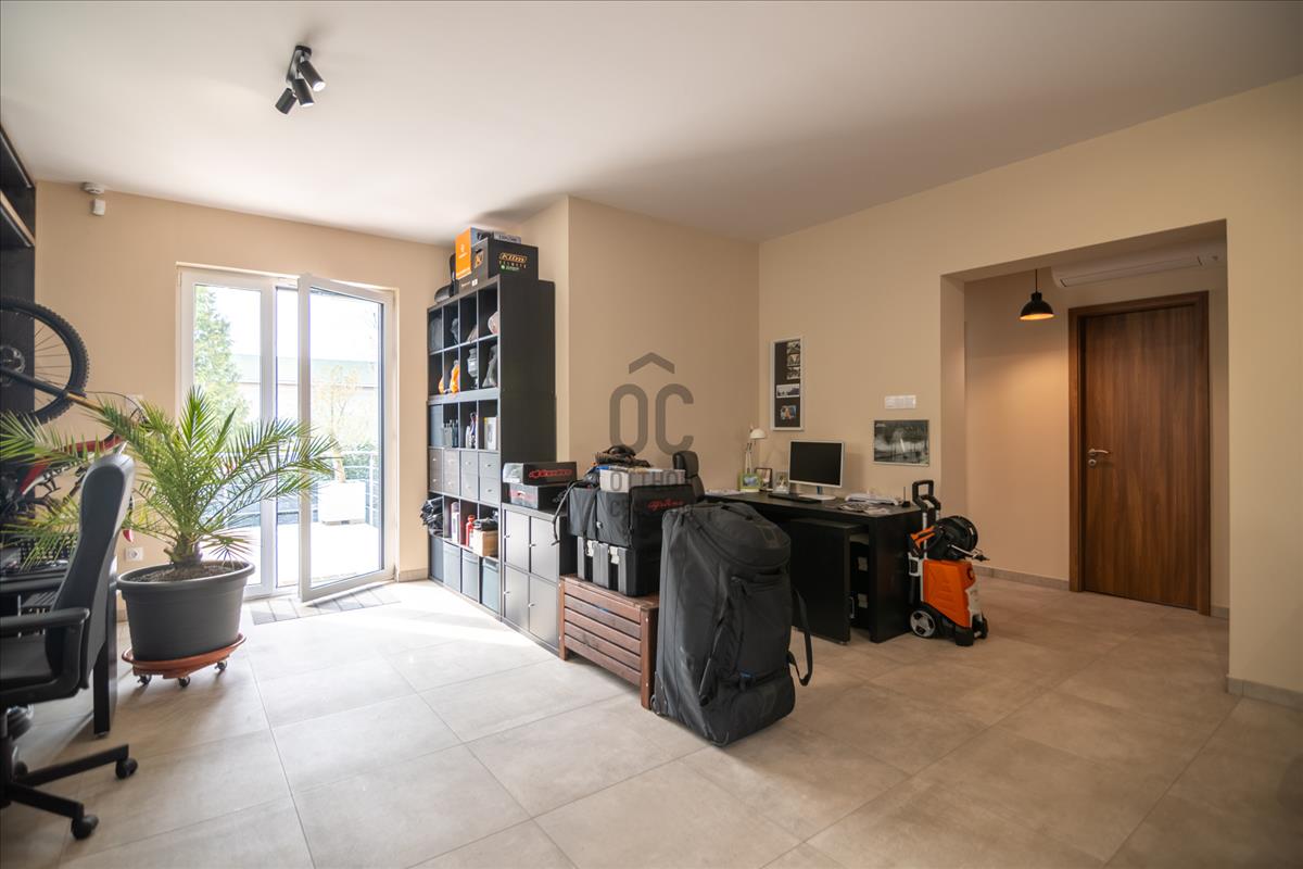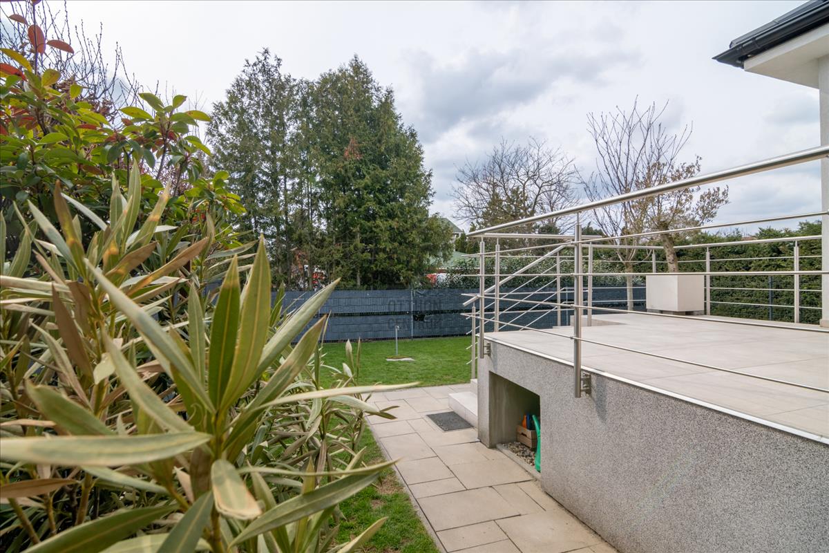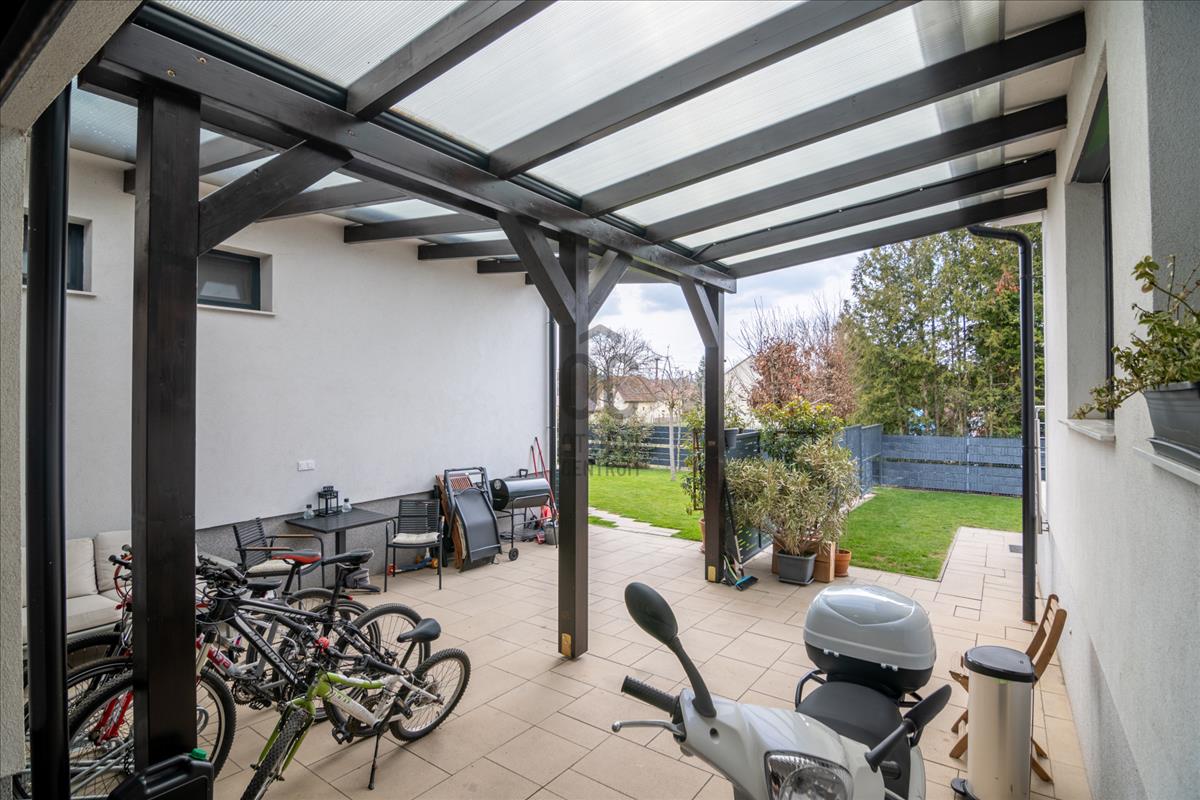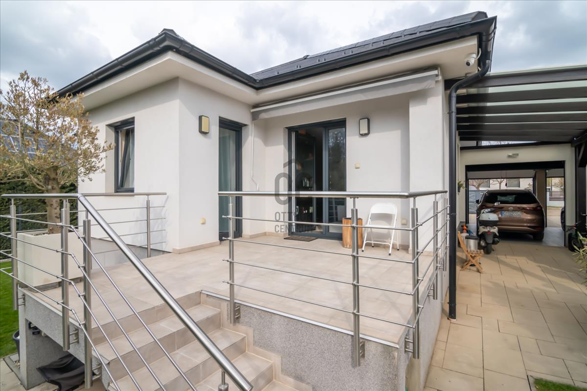 A házhoz egy kb 400nm -s saját, telekrész tartozik rendezett kerttel, és automata öntözőrendszerrel, ami megkönnyíti a kert gondozását