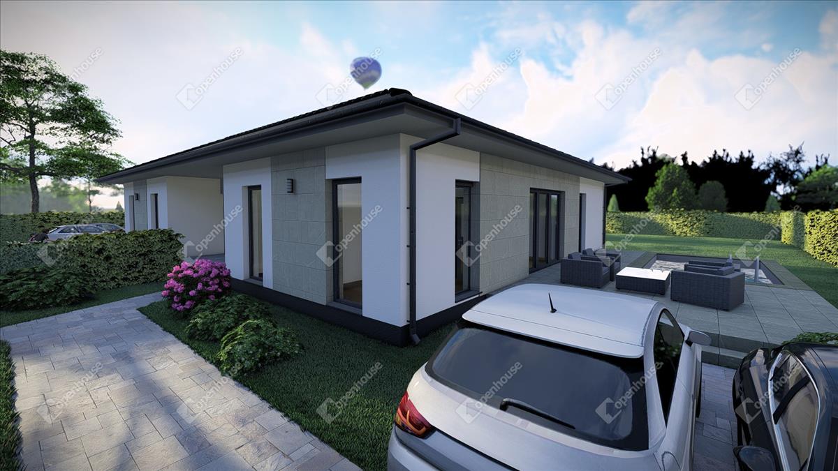 Az ingatlanról: Az ingatlan minőségi alapanyagok felhasználásával és a modern technológia alkalmazásával készül, a lehető legmagasabb színvonalon, minimás stílusban. a nettó alapterület 92m2, ami magába foglal egy hatalmas amerikai konyhás nappalit, 4 hálószobát, 2 fürdőszobát WC-vel és egy háztartási helyiséget. Továbbá az ingatlanhoz tartozik 2 db térkövezett kocsibeálló egy nagy méretű épített terasz és egy saját használatú 450m2-es kertrész is. Az ingatlanok a látványtervel megegyezően leszknek kialakítva, a medence opcionális tételként, felár ellenében érhető el.