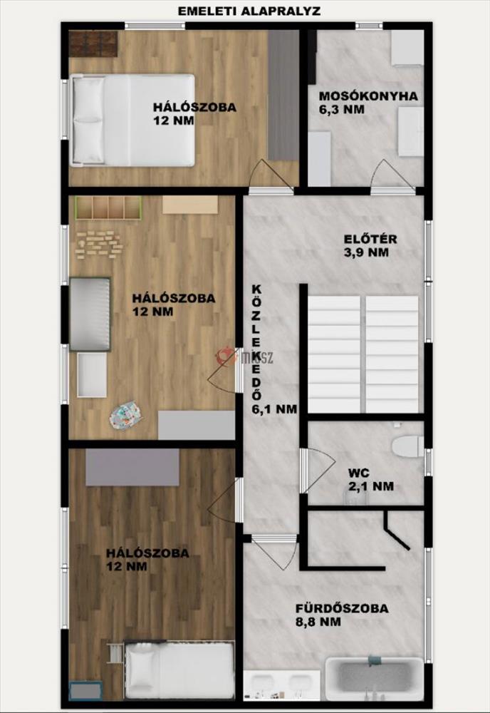 3 hálószoba: egyenként 12 nm