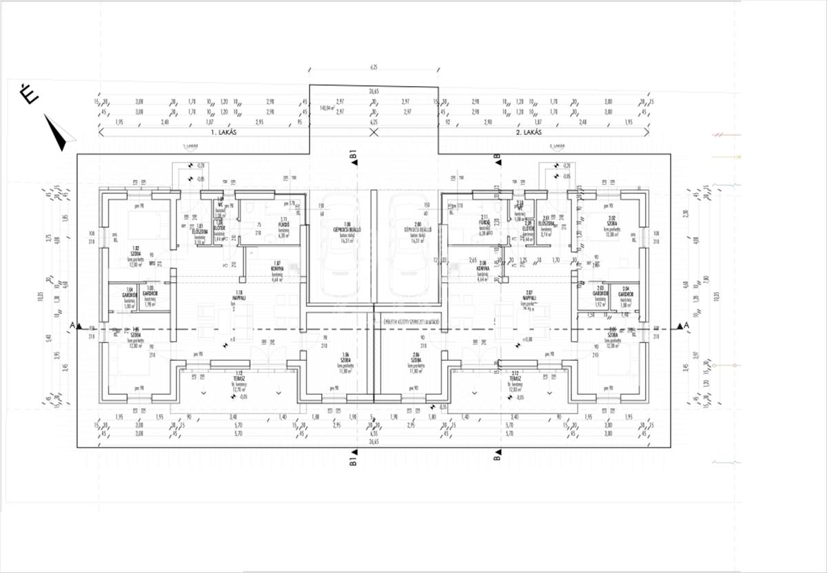 Jászberényben a Szatmári lakóparkban a Bársony utában, 798 m2-es telken, eladó 2db nettó 85, 32m2-es + 12, 83m2 terasszal és 16, 31 m2-es gépkocsibeállóval rendelkező, 30-as Porotherm p30 n+f tégla falazóelemmel épült, fafödémes, 3 szoba plusz amerikaikonyha- nappalis kertkapcsolatos Ikerházfél.