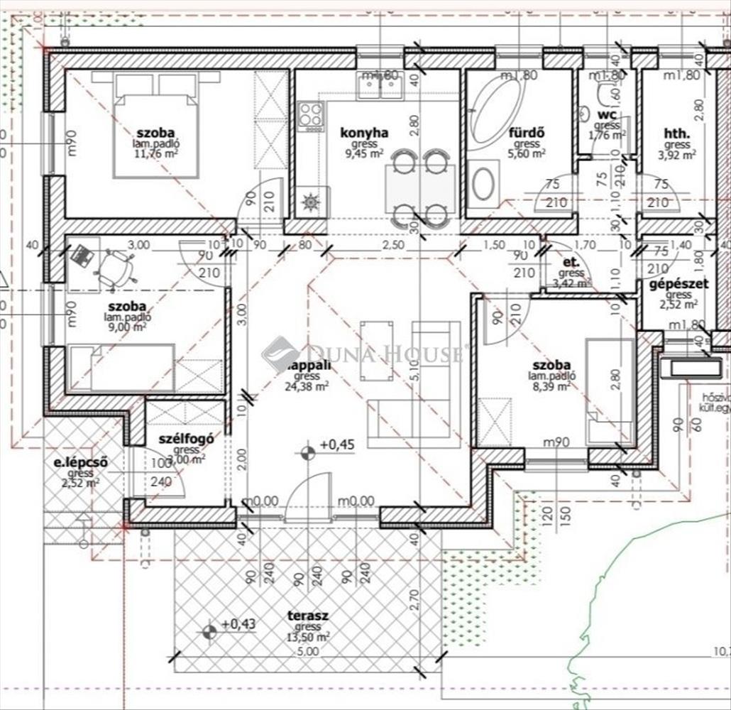 - Tájolás:DNY