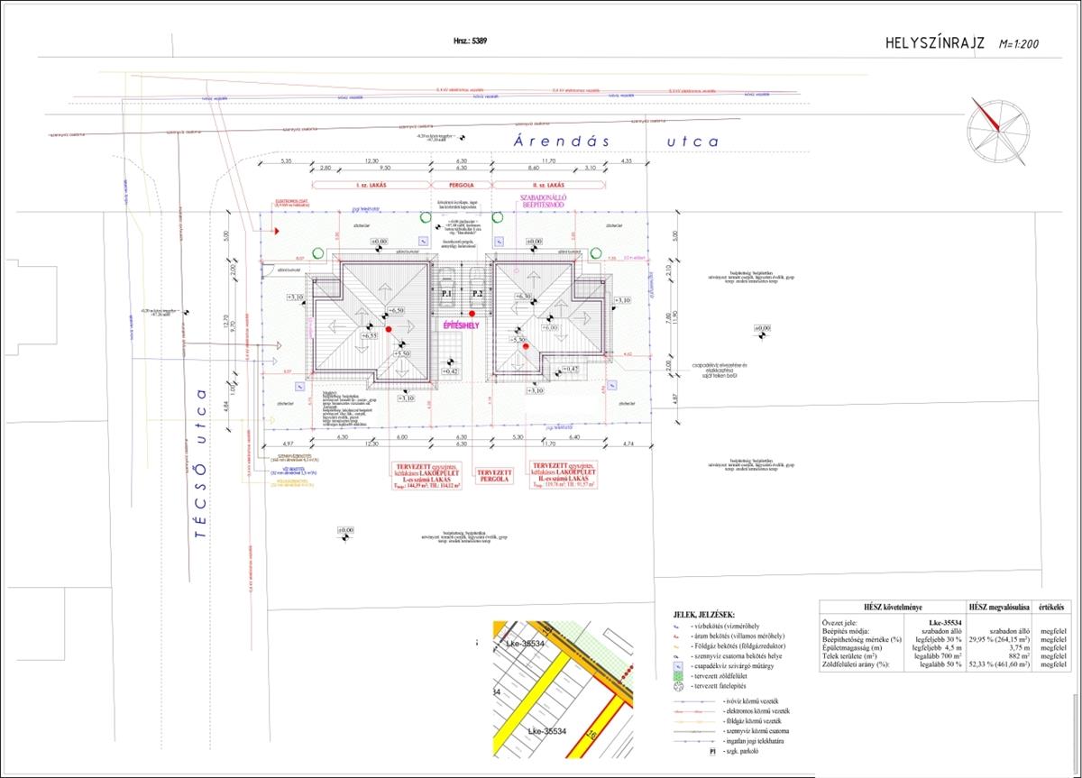 Jászberényben a Szatmáry Lakóparkban a Técső utca és az Árendás utca sarkán 882 m2-es telken eladó egy nettó 114, 12 m2-es, 441 m2-es kizárólagos használatú telekrésszel rendelkező kulcsrakész újépítésű Ikerfél.