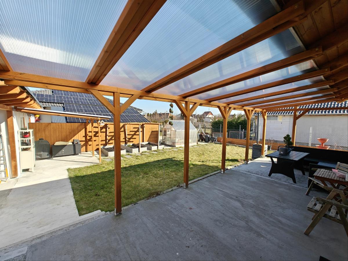 ➡ 24, 36 m²-es, UV-szűrős polikarbonáttal fedett terasz