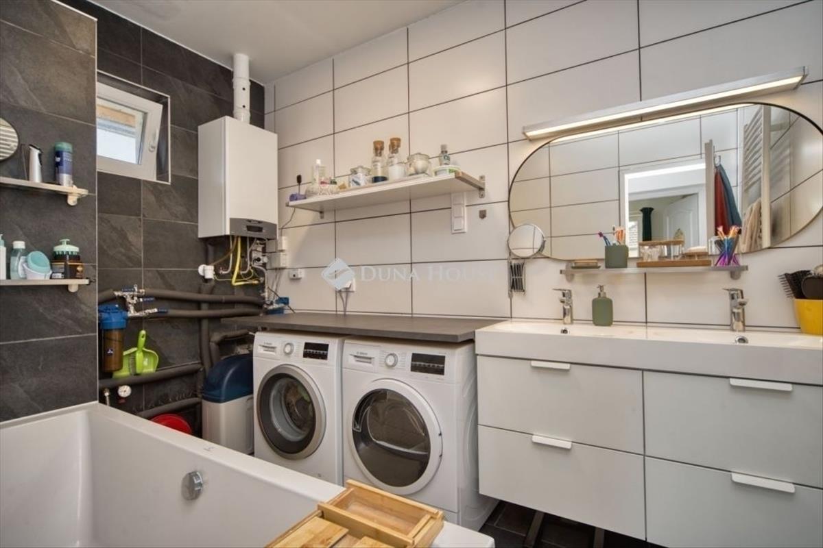 Eladó 3 éves tárolókapcsolatos ikerházfél kakucson, közös falak NÉLKÜL! Eladásra kínálunk Kakucson egy 2023-ban elkészült 90 m2 hasznos alapterületű ikerházfelet 450 m2-es saját telekrésszel. Helyiségeket tekintve az ingatlan rendelkezik 3 különnyíló hálószobával, egy amerikai-konyhás nappalival és étkezővel, fürdővel és külön WC-vel és egy előtérrel. a hasznos alapterületen kívül egy 24 m2-es fedett terasz, 6 m2-es kamra és egy 4, 5 m2-es tároló is kialakításra került. ÉPÜLET:Az épület beton alapra téglából, fa födémmel és tetőszerkezettel, betoncserép fedéssel épült. 10 Cm homlokzati, 10 cm lépésálló lábazati- és 30 cm-es ásványgyapot födémszigeteléssel rendelkezik. Prémium nyílászárók: 3 rétegű üvegezéssel ellátott, 6 kamrás profilok a kiváló hang - és hővédelemért. Fűtését ariston kondenzációs kazán biztosítja padlófűtéses és radiátoros hőleadással. EXTRÁK:- WIFI-s hővisszanyerős szellőztető rendszer, hűtő-fűtő klíma és egy törölközőszárító- 3 fázisú elektromos kiállás napelemes rendszer inverterének fogadására- Ethernet- és koaxiális csatlakozás minden szobában- Kamerás kaputelefon és kamerarendszer- Elektromos kapu távnyitással és rádióvezérlésű autókapuKERT:- 450 m2 alapterületű saját, körbekerített kertrész- 48 m²-es murvázott gépkocsibeálló több autó parkolására is- 2350 liter vízgyűjtő kapacitás (1000 literes tartály szivattyúval)- magaságyások, üvegházAz ingatlan saját helyrajziszámmal rendelkezik, jogilag teljesen külön funkcionál a szomszédos ikerházféltől. ÖRÖMMEL állok rendelkezésére a duna house kínálatában megtalálható összes ingatlannal kapcsolatban. Hétvégén is várom megtisztelő hívását! FIX 3% lakáshitelre megvehető