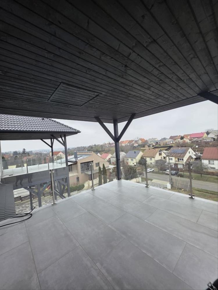 Emelet: 4 hálószoba, egy nagy méretű szobából nyíló 20 m²-es, üvegkorlátos panorámaterasz, továbbá egy tágas fürdőszoba.