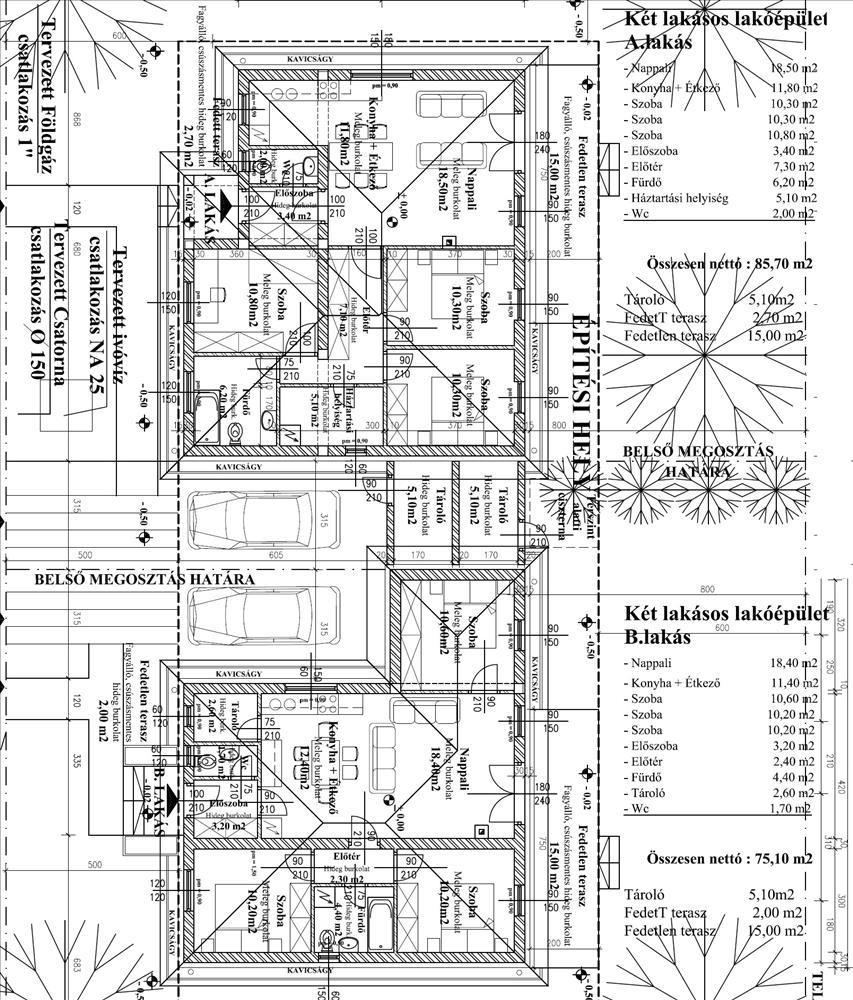Parkolás 20nm faszerkezetű pergolával fedett kocsibeállóval megoldott.