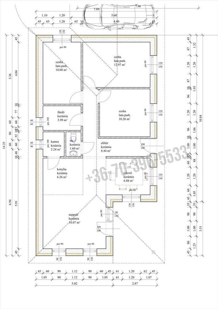- 3 szoba (12, 97 nm, 10. 26 Nm, 10. 08 Nm)