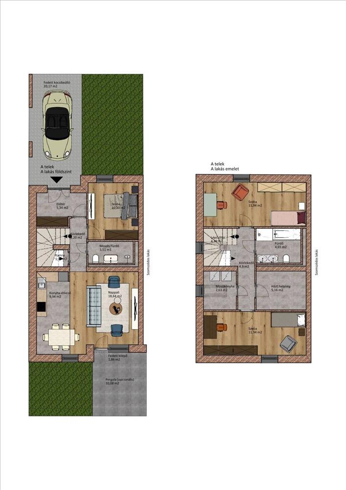 Opcionálisan fedett autóbeálló kérhető hozzá, melynek ára: 2, 5m Ft.