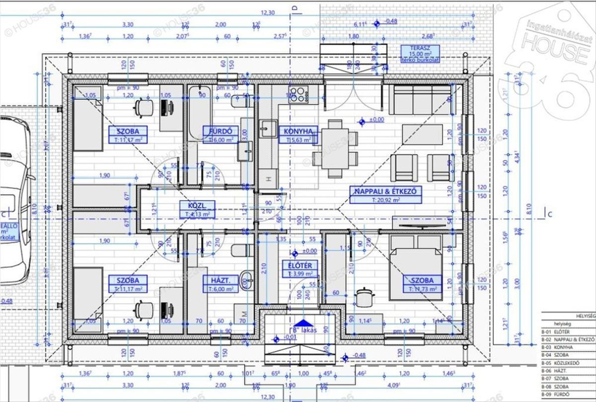 - nappali + 3 szoba