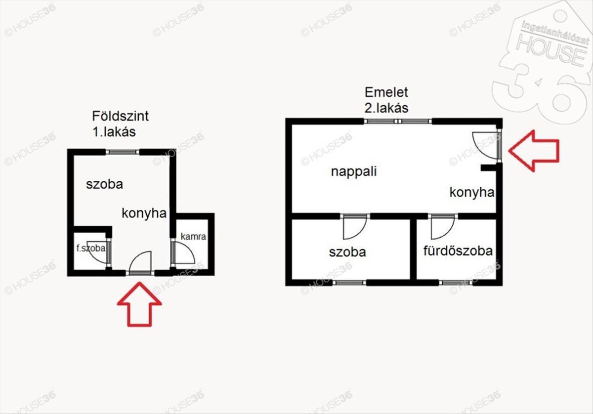 - földszint: szoba-konyha, fürdőszoba