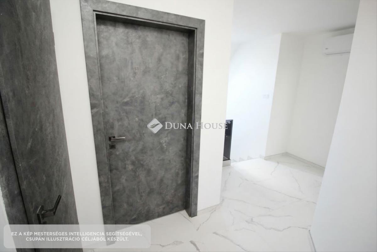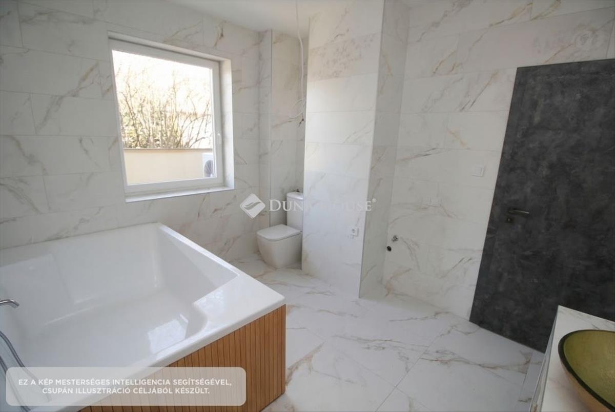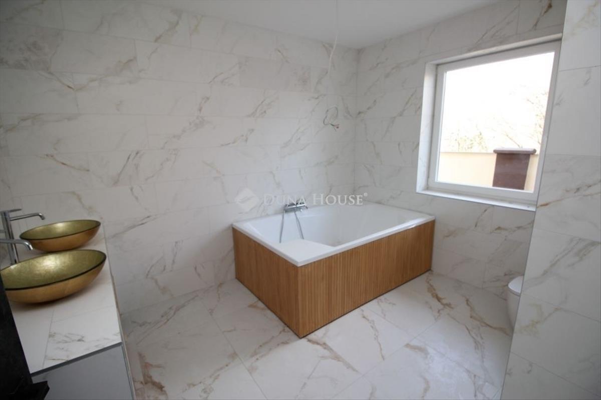 A földszinten egy tágas, amerikai konyha nappali került kialakításra, valamint egy különleges adottságú, igényesen kialakított fürdőszoba található. a prémium minőségű, egyedi tervezésű konyha teljesen felszerelt, a beépített gépekkel együtt a vételár részét képezi. Az emeleten három hálószoba és egy külön wc kapott helyet. a belső tereket gyönyörű dekorfalak és magas minőségű, gondosan kiválasztott burkolatok teszik igazán elegánssá. a teraszok időjárásálló wpc burkolattal készültek, amelyek tartós és esztétikus megoldást biztosítanak. a ház fűtéséről hőszivattyús rendszer gondoskodik H tarifa igénybevételével, a teljes ingatlanban padlófűtéssel.