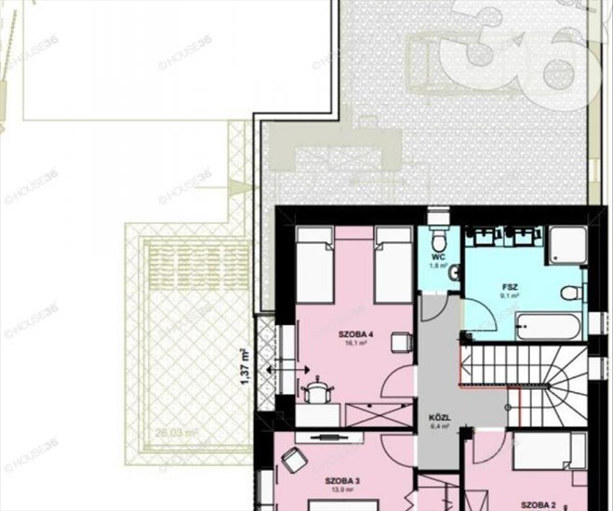 Nappali + 3-4 szoba (választható), dupla fürdő, háztartási helyiség.