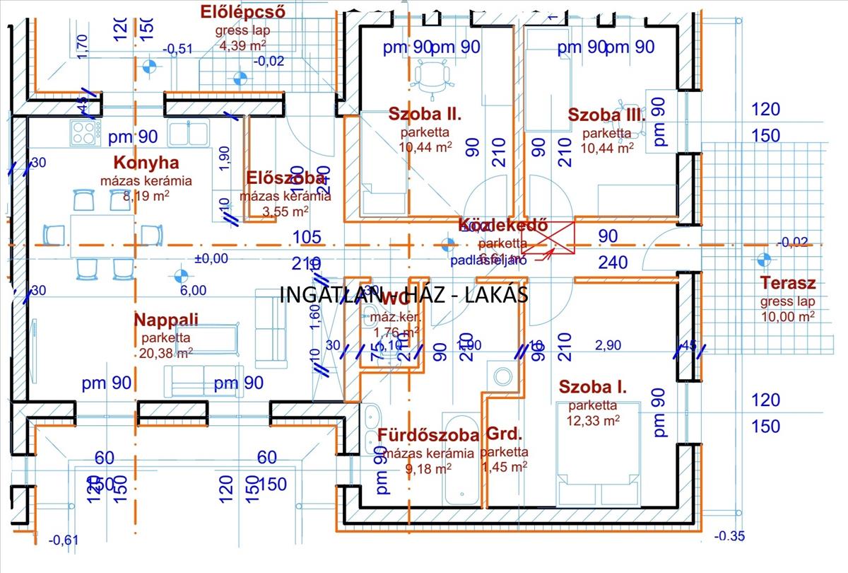 -Helyiségek: 3 hálószoba, amerikai konyhás nappali, fürdőszoba, külön wc, gardrób