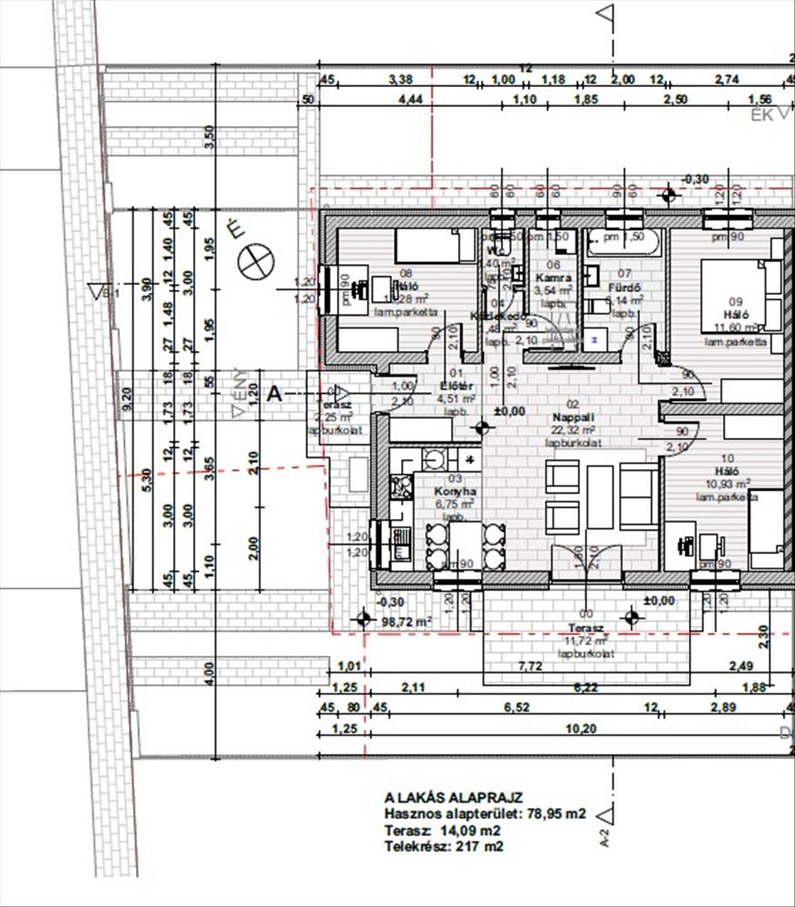 A lakás nettó: 78, 95 m2+Terasz: 14, 09 m2+Telekrész: 217 m2 65 Millió