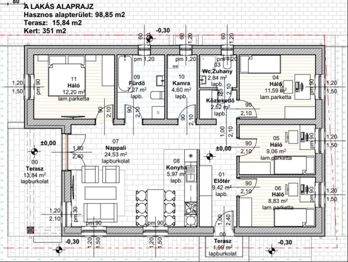 Műszaki adatok- Hasznos alapterület: 98, 83 m2