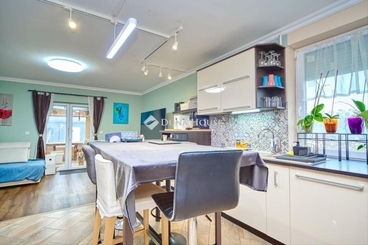 Budapesttől csupán néhány kilométer távolságra, közvetlenül a XVI. kerület határában, kistarcsán keresi új tulajdonosát egy igényes családi otthon. Mi az, amire vágysz mikor új otthonod keresed? Saját, intim telekre autó beállókkal? Impozáns és tágas 460 nm-es kertre? Egy modern, ízléses ikerházra, ahol mindenkinek meglesz a saját szobája? Jó hírem van megtaláltad! Adok pár okot miért ezt a házat válaszd:+ a 2015-ben épült ház össz alapterülete a két szinten 87 nm nettó, mindez két szinten 4 hálószobával és egy fürdővel, két wc-vel, + az ingatlan tégla építésű, 10 cm-es külső szigetelést kapott, + földszinten igazán jó elosztása révén a nappalin kívül egy hálószoba is van. Ezen kívül egy minden igényt kielégítő konyha is be lett rendezve, ahol még az étkező is elfér, + a bejárat fedett teraszról nyílik és a konyha is terasz kapcsolatos, ahol a pont megfelelő méretű kert fogad. + Egyik legjobb tulajdonsága, hogy a földszinten is található hálószoba és külön mellékhelyiség. + Az emeleten további 3 db hálószoba lett kialakítva, melyből az egyik erkélyes. Ezen kívül egy felújított fürdőszoba várja új tulajdonosát, + a ház melegéről cirkó fűtés gondoskodik, a kellemes hőérzetről 2 db klíma gondoskodik, +kiemelném: az ingatlan saját helyrajzi számmal rendelkezik, külön bejáratú és elszeparált, külön mérőkkel rendelkezik, így hitelezhető. Extrák:- az automatikus kapu lehetővé teszi, hogy telefonról nyisd ki, - használati melegvizet gázcirkó kazán biztosítja, melyet egy Ariston okos bojler egészít ki puffertartályként, - a cirkó, amit Netatmo okos vezérlés egészít ki, szobánként külön állítható, időzíthető, távolról vezérelhető, - az autóbeállóhoz két szárnyas, motoros kapu tartozik, intelligens vezérléssel felszerelve, - a ház jelentős része okosrendszerrel vezérelt, amely magában foglalja az intelligens világítást, ajtónyitás érzékelőket és kamerákat is. Például a kapu akár távolról, telefonról is nyitható, és sötétedéskor a kültéri világítás automatikusan felkapcsol. Digi/One optikai gigabites internet is adott. a vételár részét képezi:- a beépített gépesített konyhabútor, - a 2 db klíma, - a gardrób szekrények is benne vannak. Ikea pax rendszerek - méretek szobánként:Gardrób szobában: 250cm*60cm*238cmDolgozó szobában: 300cm*60cm*238cmGyerek szobában: 100cm*60cm*238cmHálószobában: 150cm*40cm*238cmHelyiséglista:FÖLDSZINT:NAPPALI 21, 69 m²SZOBA 12, 48 m²KONYHA-ÉTK. 9, 83 M²WC 0, 96 m²LÉPCSŐ 2, 43 m² (1, 39)szélfogó 2, 08 m²ÖSSZESEN: 48, 81 m² (49, 57)tornác 2, 38 m²TERASZ 12, 15 m²TETŐTÉR:SZOBA 11, 59 m² (14, 48)szoba 10, 18 m² (15, 37)szoba 8, 80 m² (10, 91)előtér 3, 24 m²ÖSSZESEN: 33, 81 m² (44, 70)terasz 2, 80 m²HÁZ mindösszesen:földtér 48, 81 m²TETŐTÉR 33, 81 m²ÖSSZESEN: 87, 62 m²MINDÖSSZESEN:1, 9 m feletti hasznos alapterület: 86, 62 m²1, 9 m alatti hasznos alapterület: 94, 27 m²Egy 15 centiméter vastag beton alapra került egy 5, 5 m x 4 m méretű konstell lemez garázs. a garázsban egy autó kényelmesen elfér, itt akár elektromos autó töltésére is van lehetőség, emellett pedig további pakolófelület is rendelkezésre áll. Mellette egy, szintén 15cm benton alapon, 5m*3m-es fa kerti tároló kapott helyet. Kistarcsa kiváló elhelyezkedésű, az M0-s autóút könnyen és gyorsan elérhető, az autós közlekedés rendkívül kedvező. a tömegközlekedést a kötöttpályás hév biztosítja, amely az Örs vezér teréig közlekedik; a megálló mindössze 900 méterre található. a közelben több bevásárlási lehetőség is elérhető: Lidl, Aldi, Auchan és Spar üzletek egyaránt megtalálhatók. a környéken helyi iskola, óvoda, valamint ezekhez tartozó uszoda is rendelkezésre áll. a szórakozni vágyóknak és az adrenalin kedvelőinek egy GoKart pálya nyújtja a megfelelő kikapcsolódást. a túrázni, csendes zöld területen sétálni vágyók pedig a Csömöri Patak mentén találhatják meg a nyugalmat. Amennyiben Kistarcsán keresel egyedi és ízléses ikerházat, amire akár költeni sem kell, akkor itt a helyed! Várom megtisztelő hívását a hét minden napján