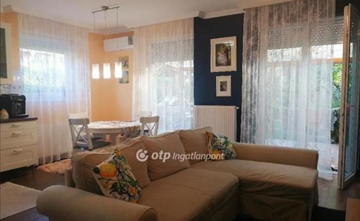 A 2013-ban épült egyszintes ház elrendezése praktikus és ideális, minden helyiség egy tágas közlekedőből közelíthető meg: két szoba, fürdőszoba WC-vel, külön wc, tároló, háztartási helyiség, gardrób és a hatalmas amerikai konyhás nappali, melyből egy 20 nm-es fedett terasz nyílik. Az egész lakás világos, napfényes, vidám színeivel fiatalos és barátságos. a garázs szintén közvetlenül a közlekedőből érhető el, mely igény esetén akár egy plusz szobává is átalakítható.