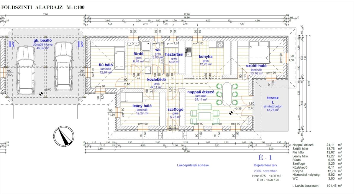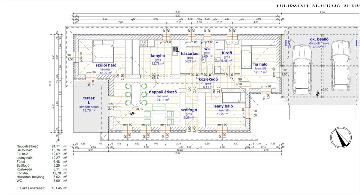 A tető héjazata betoncserép lesz, a homlokzatok 15cm eps, a padló 10cm lépésálló, a födém 30cm ásványgyapot szigeteléssel lesz ellátva.