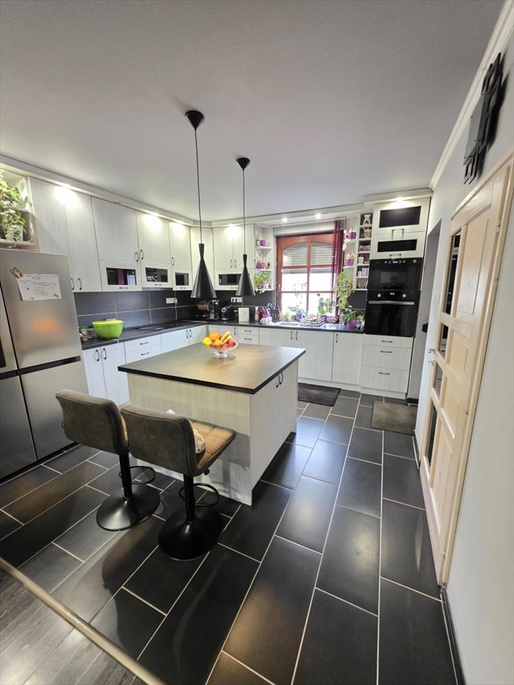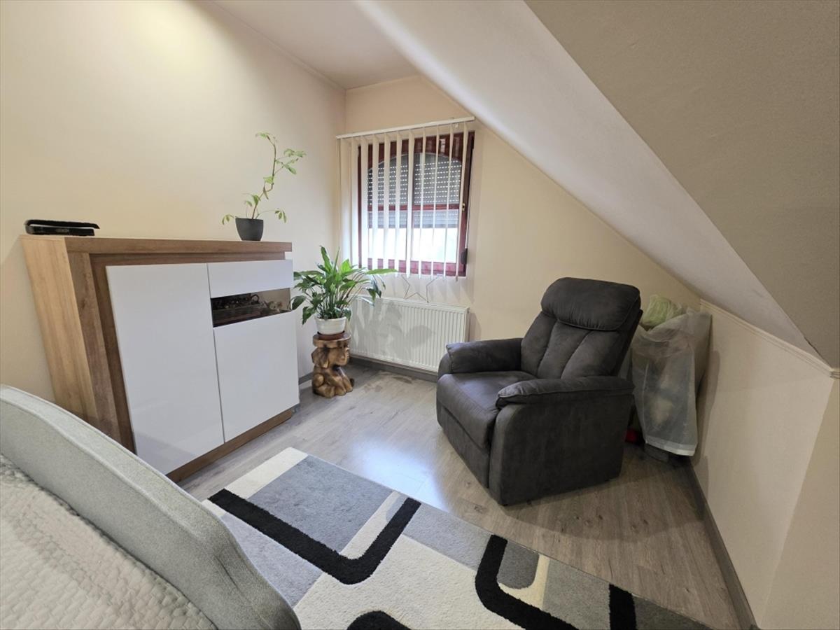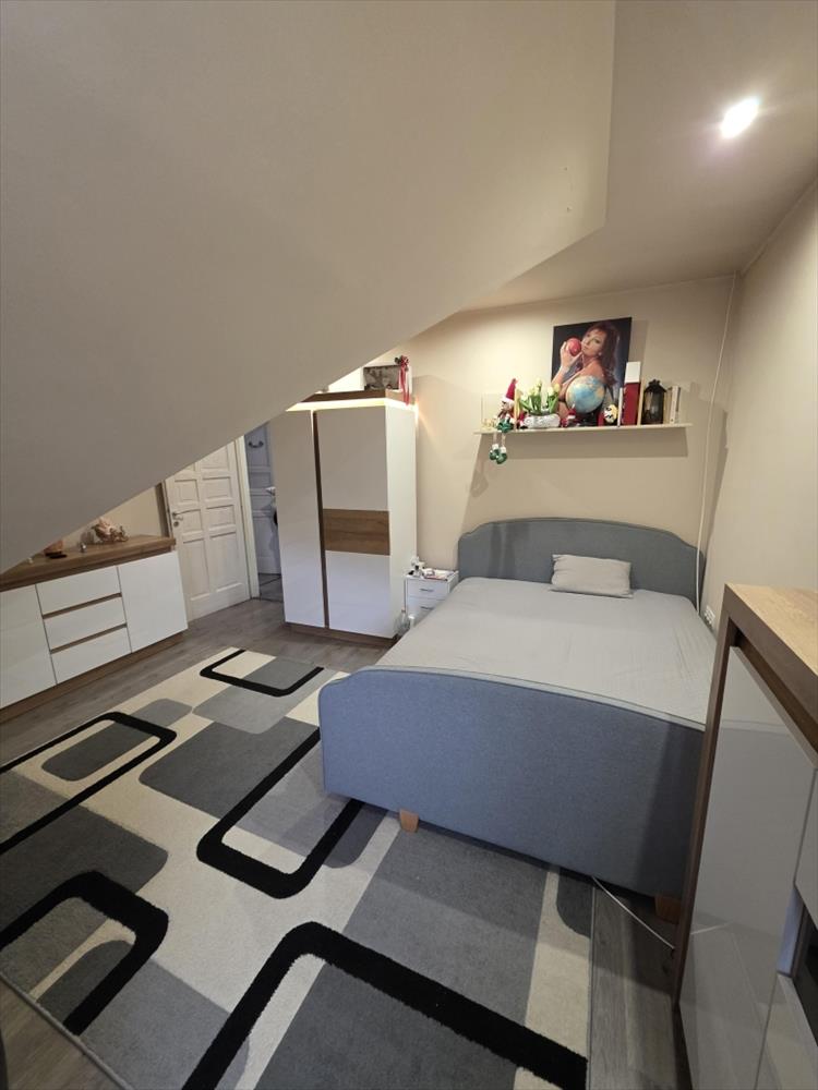 Az emeleten négy tágas hálószoba, egy külön gardróbszoba, valamint egy kényelmes méretű fürdőszoba található, ideális elosztással akár nagyobb család számára is. a lakásból közvetlen átjárás biztosított a garázsba, ami a mindennapok során különösen praktikus megoldás.