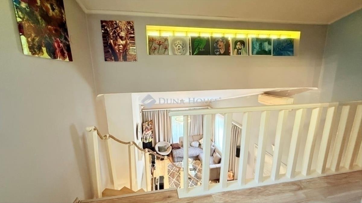 A tetőtérben két hálószobát alakítottak ki, valamint egy kis erkélyt, ahonnan csodálatos panoráma tárul elénk, különösen a reggeli vagy esti órákban.