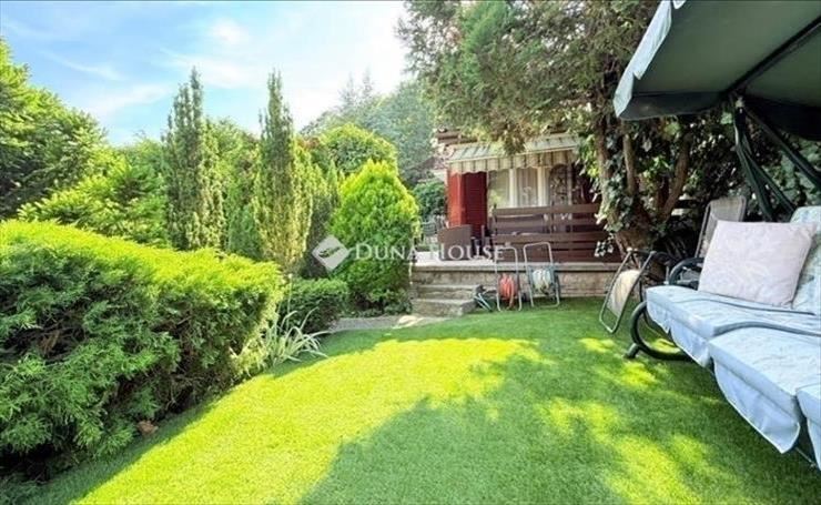 A kert gondozott, növényekkel beültetett, automata öntözőrendszert építettek ki.