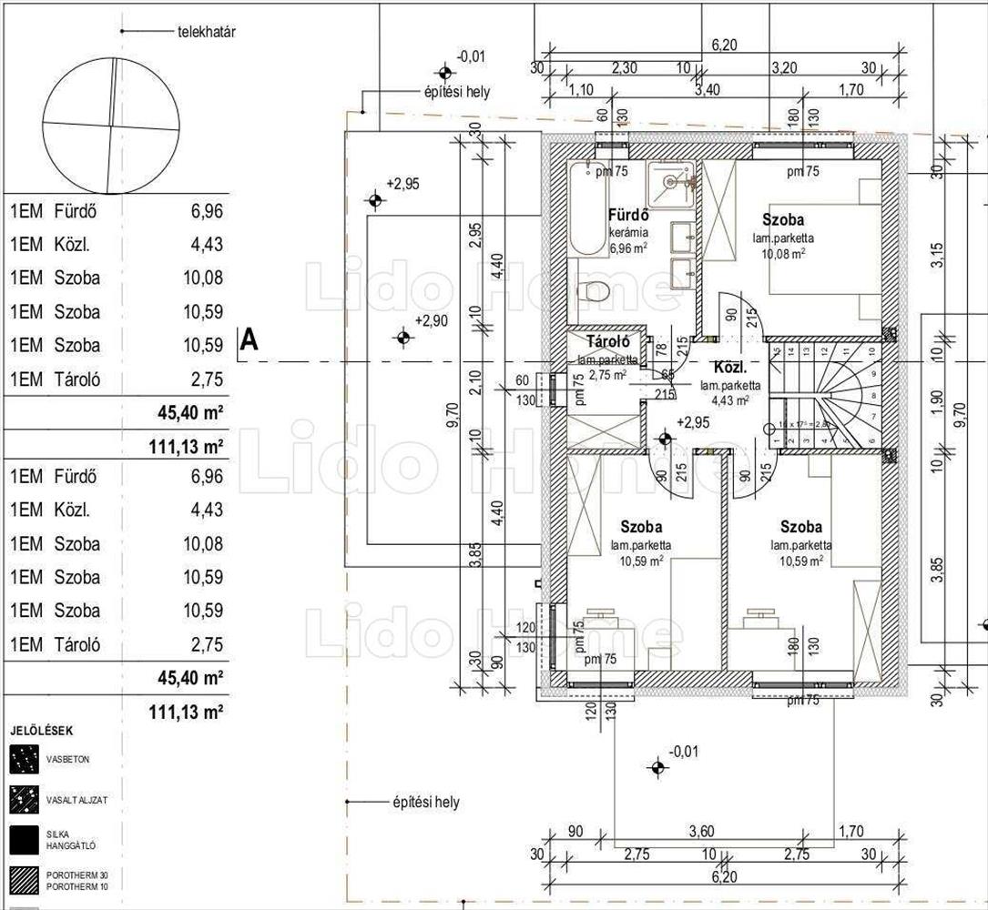 Emelet: 3 szoba + fürdő + közlekedő + gardrób