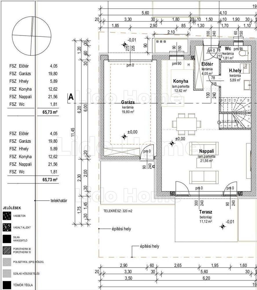 Elosztás: Amerikai konyhás nappali + előszoba + wc + háztartási helyiség + kamra + terasz + garázs