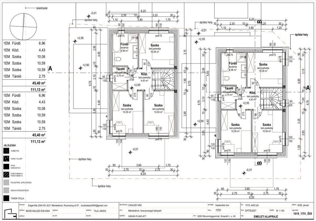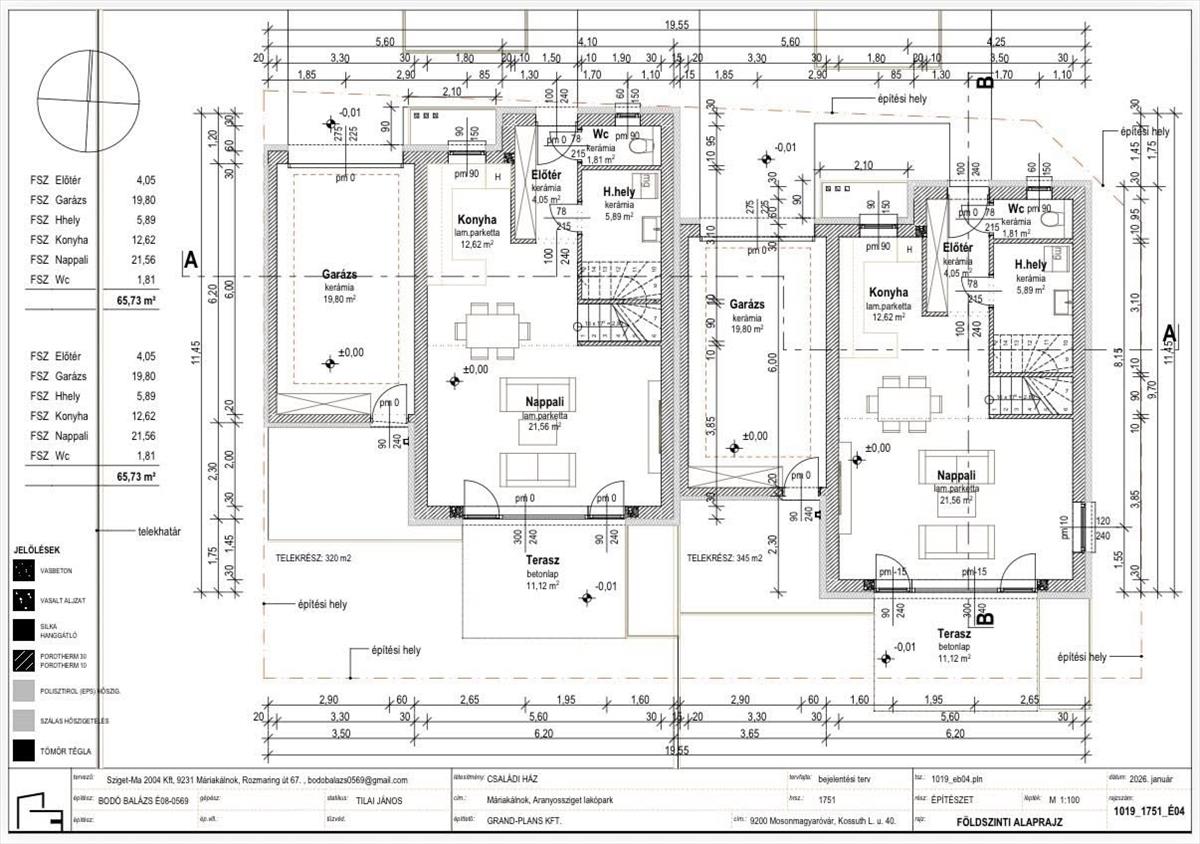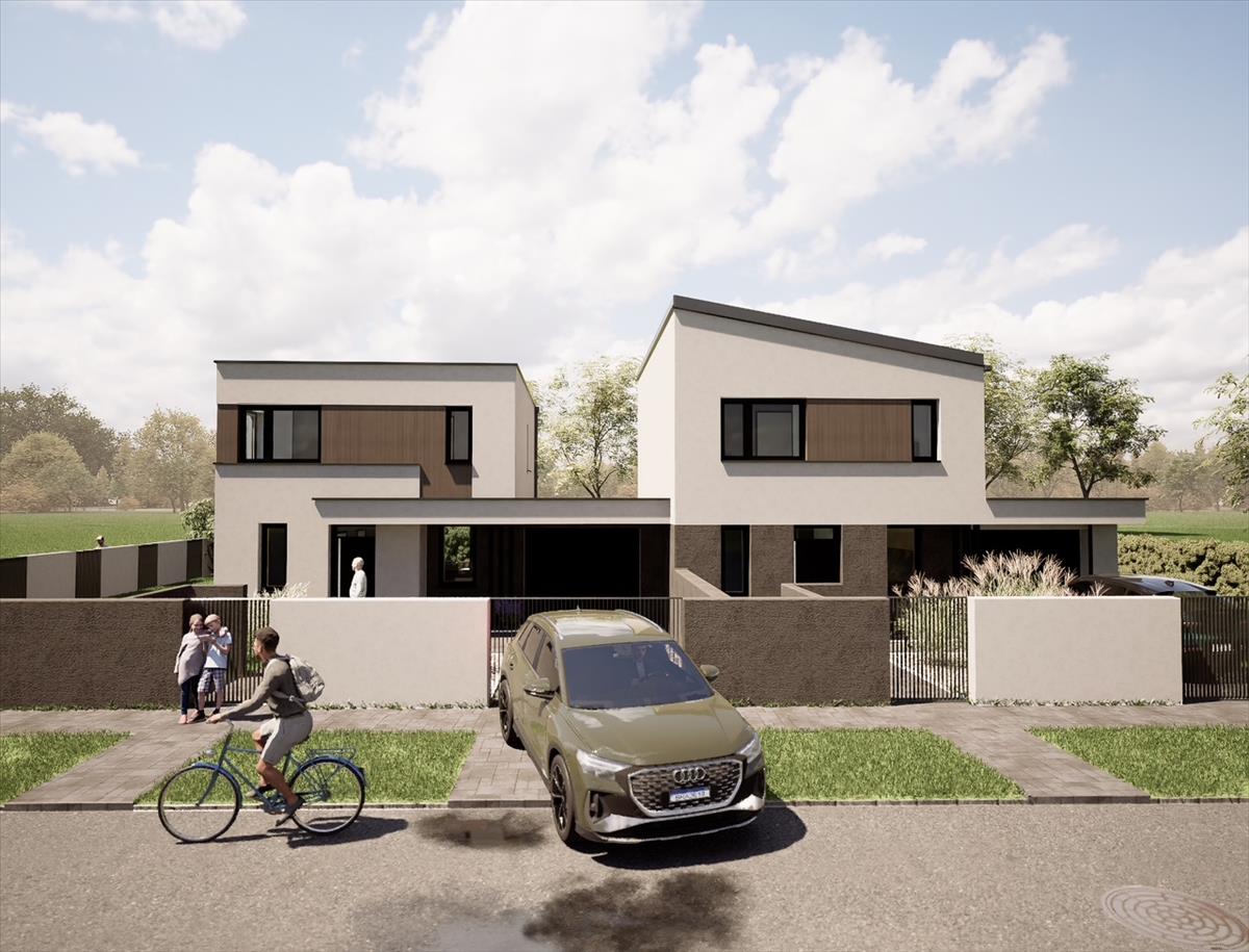A 645 nm-es sarki telken 2 db ikerház kerül megépítésre, külön telekhányaddal.