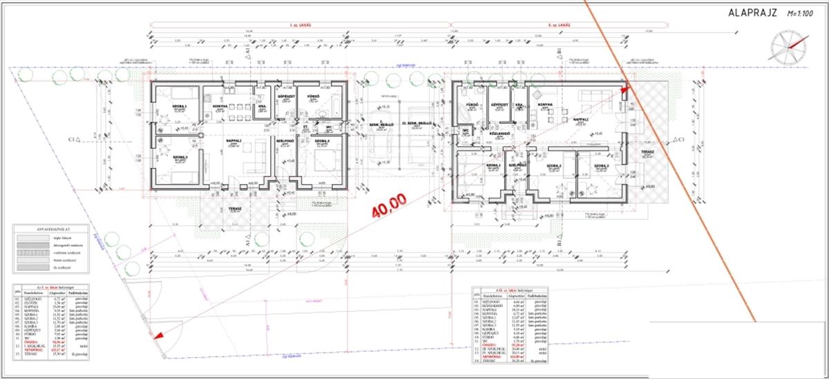 Mendén a Bercsényi utca 14 szám alatt, 1050 m²-es telken épülő 2db nettó 92, 56 m²-es és 93, 28 m²-es + 40-40 m² fedett gépkocsibeállós, amerikai konyhás nappali + 3 szobás cseréptetős, családi ház eladó! .